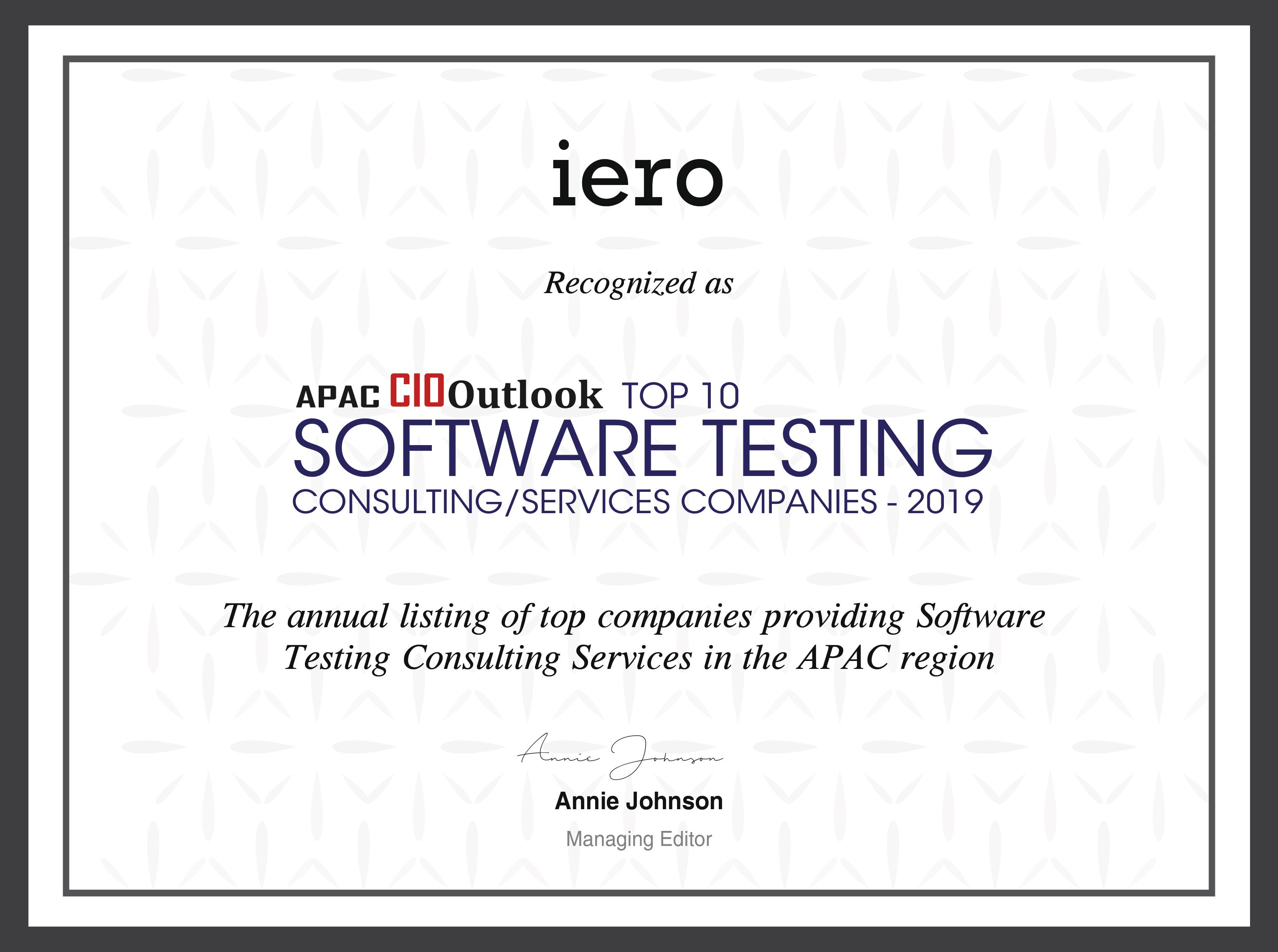 Software Testing Consulting/Services Companies - 2019 トップ10企業の1社に選出されました。